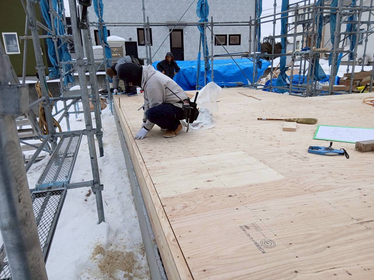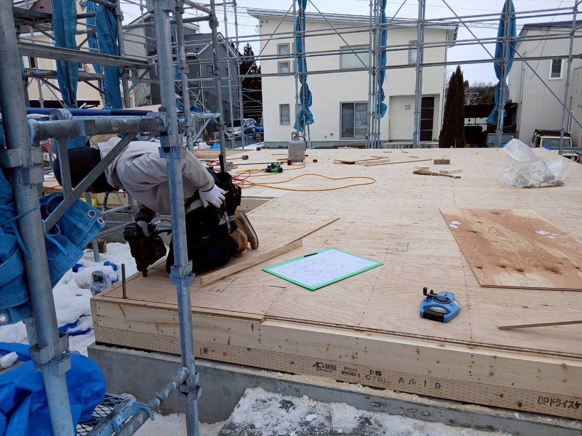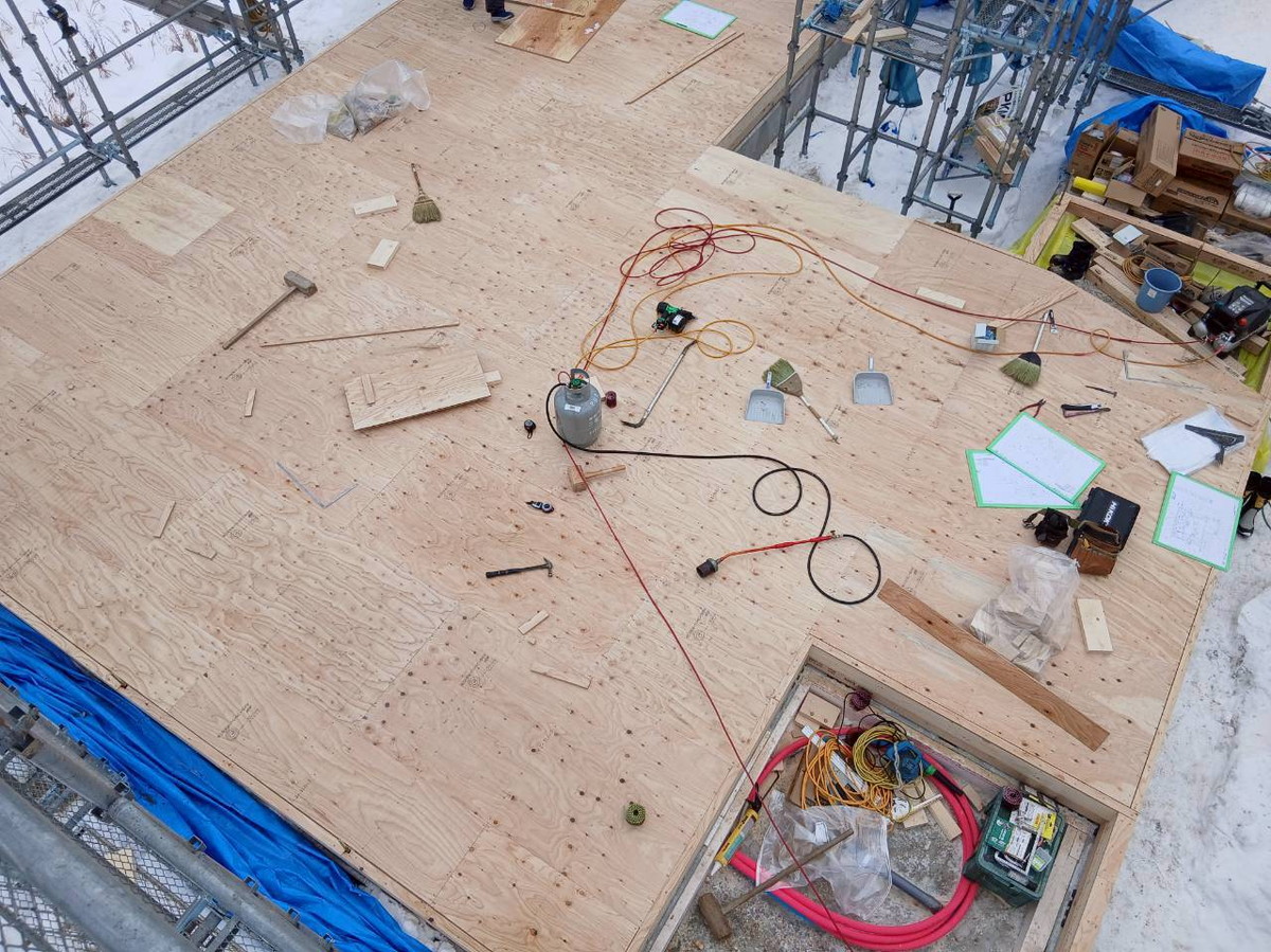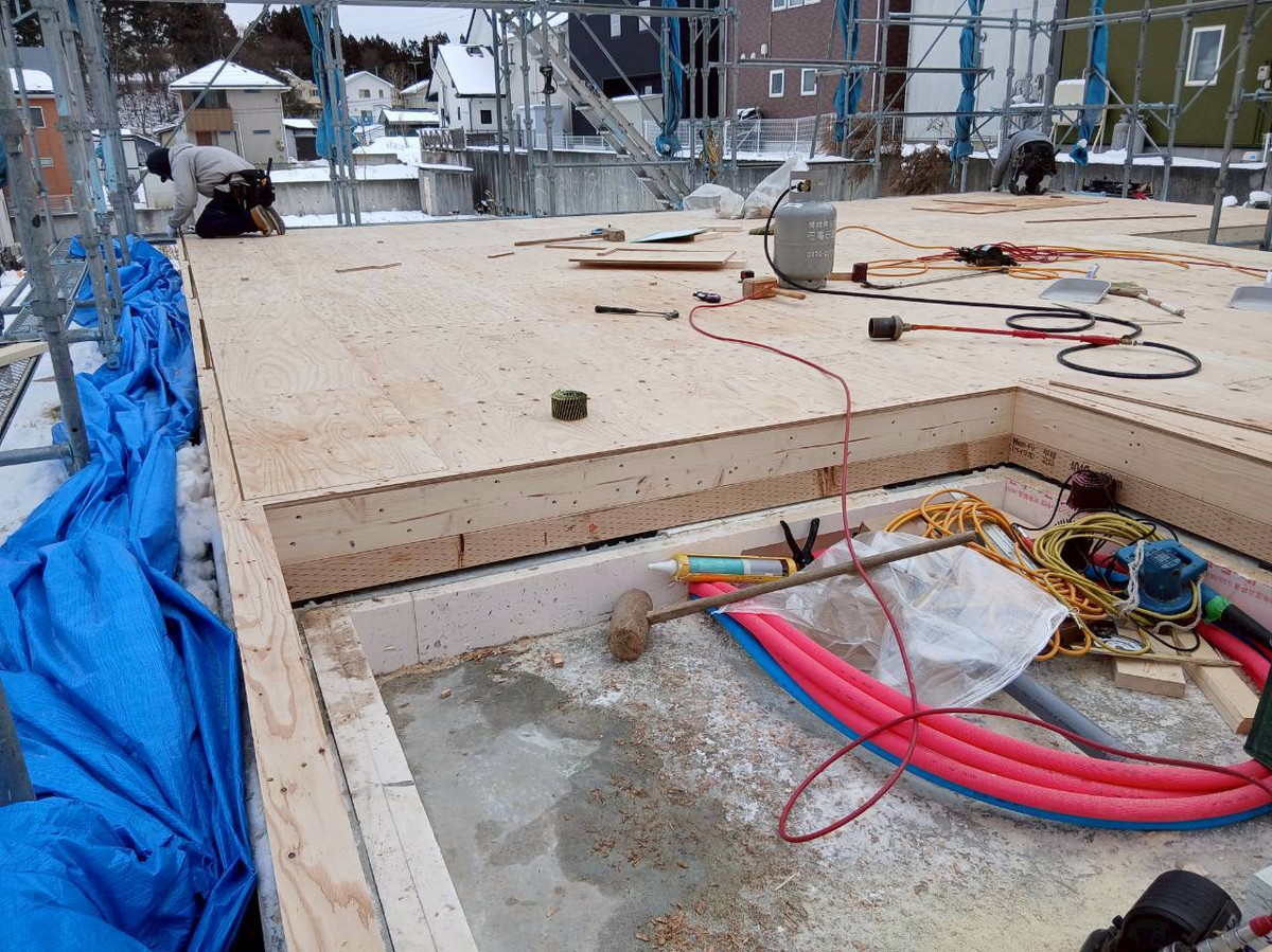 1F床合板張りを行いました。