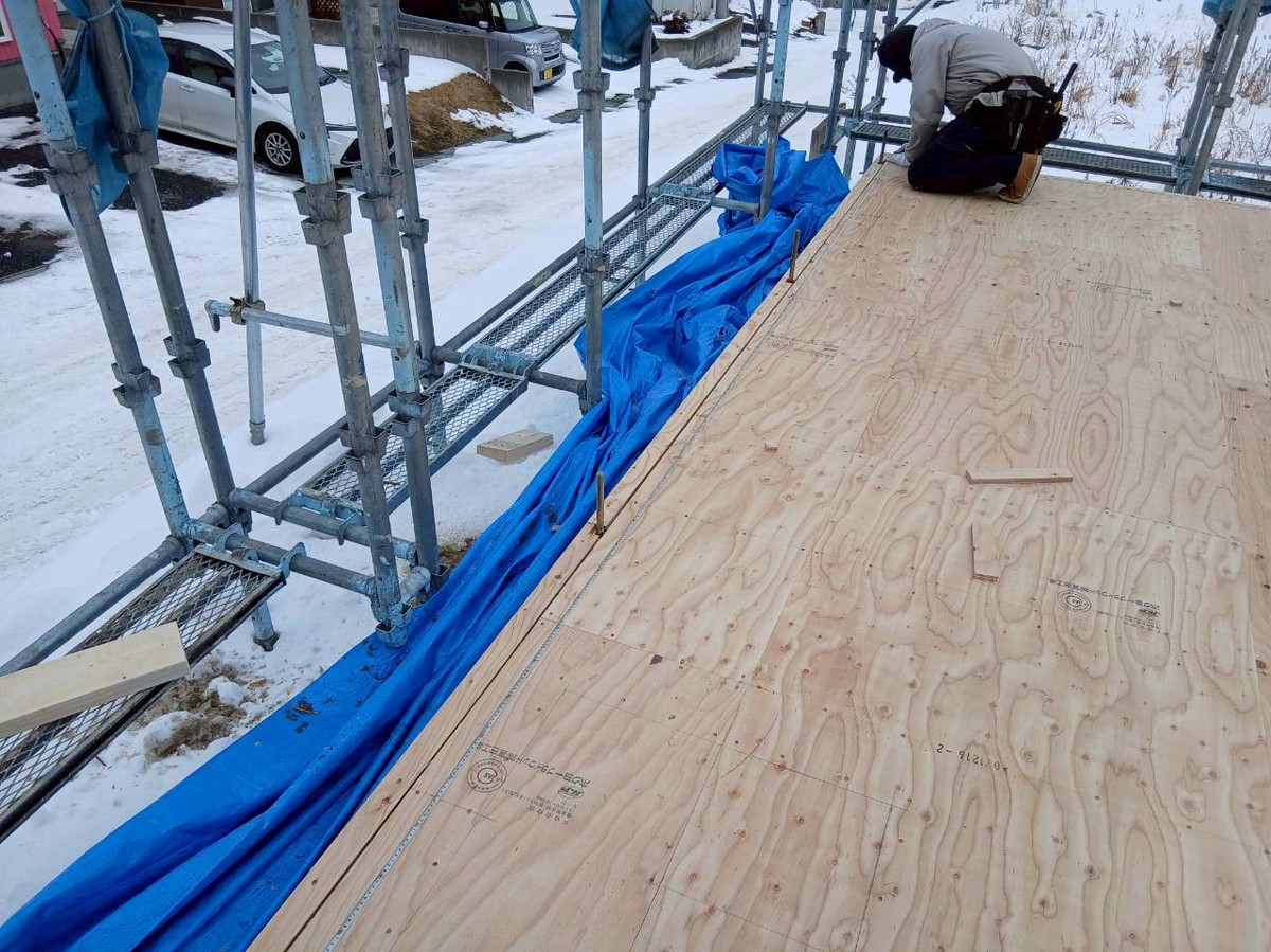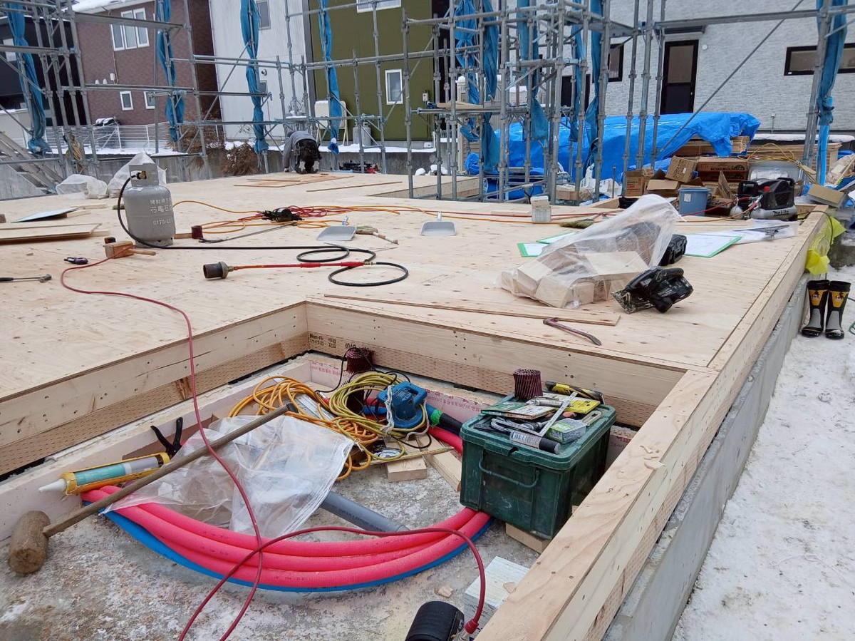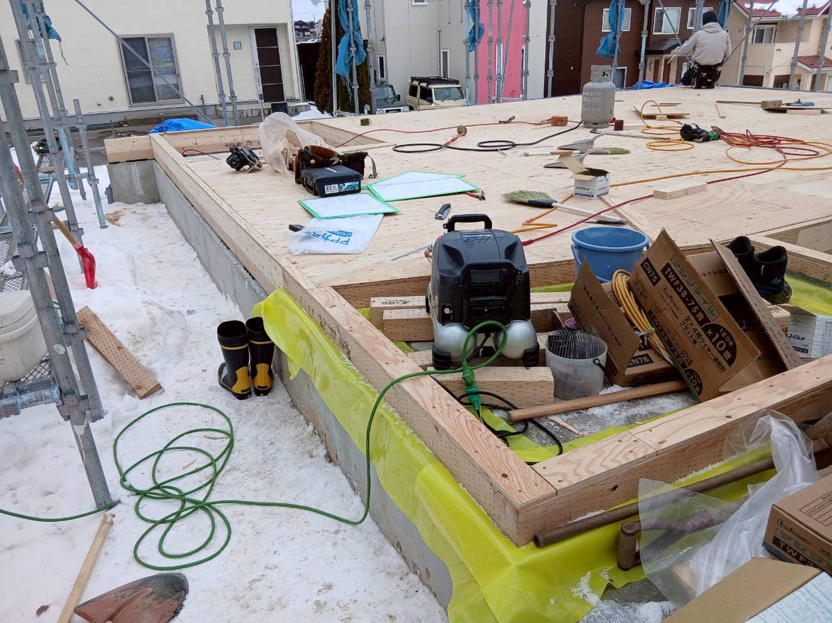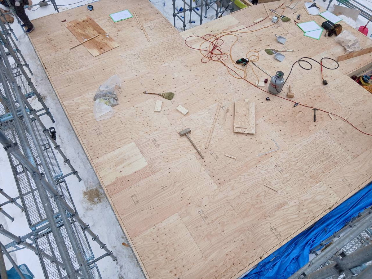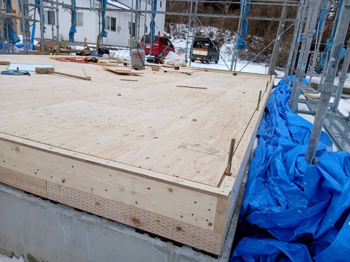 1F床合板張りを行いました。